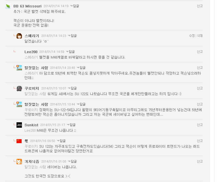 또한 레드 드래곤 항목을 보면 알겠지만 국군에 M18 헬켓과 M36 잭슨이 등장하는 것이 고증 오류라서 엄청나게 까였는데 그걸 넣은 원흉으로 드러나 기갑갤과 카페에서 불이 났다. 원글의 답변이 삭제되어 동의하에 이골님의 블로그를 링크함.현재 블로그 링크가 삭제되어 확인불가
